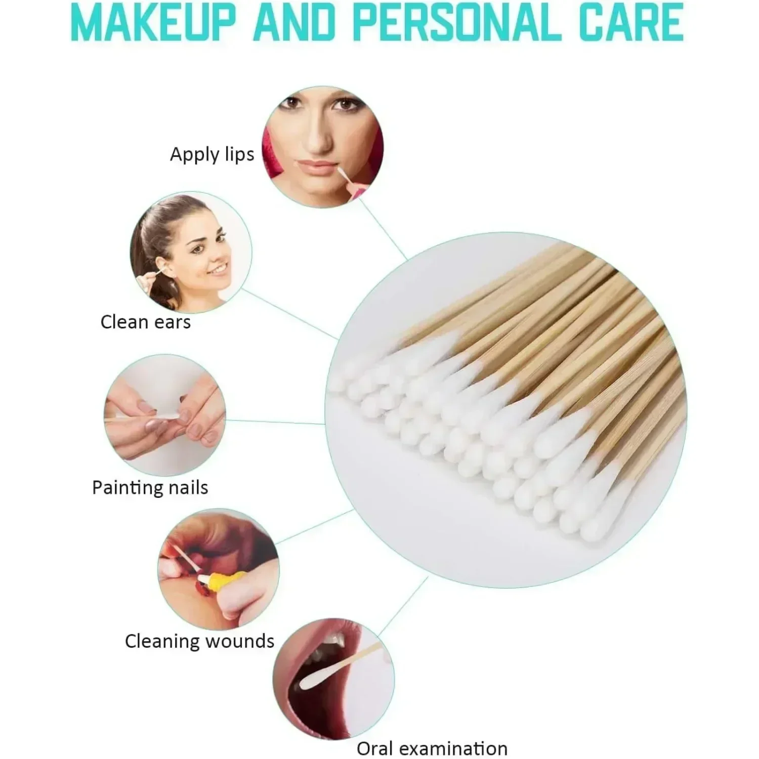 CDY 400p Long Q Tips for TATTOO Cleaning, 6 Inch Bamboo Qtips Cotton Swabs Precision Swabs for Makeup, Ears, and Gun Cleaning
