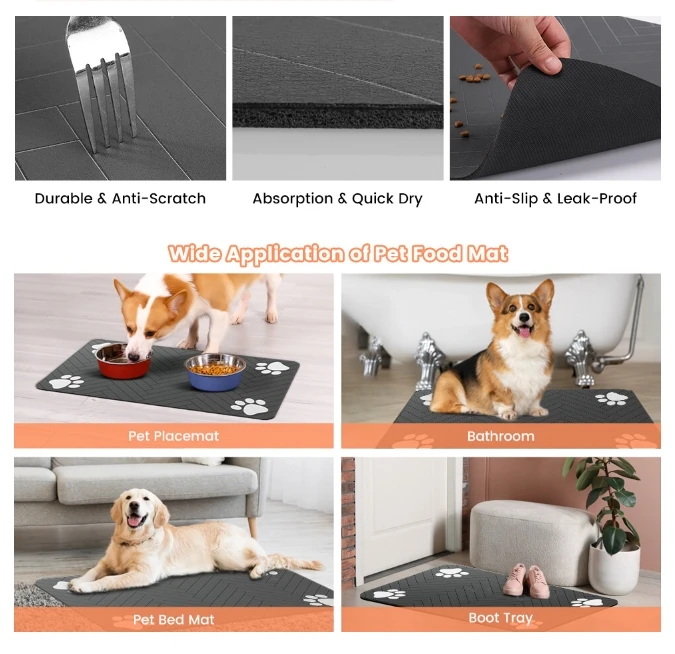VIKAMA Dog Food Mat Cat Food Mat Cat Pet Mat Pet Food Mat Leak-proof Easy to Maintain Diatomite Mud Washable Dirt Repellent