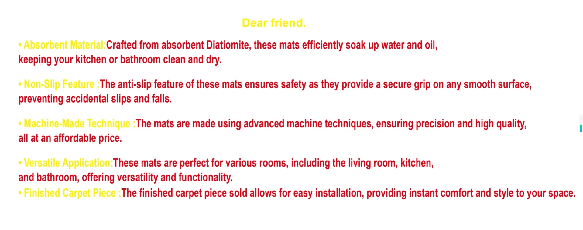 Product Characteristics: Washable,Absorb water,Scratch-resistant,comfortable and soft,non-slip